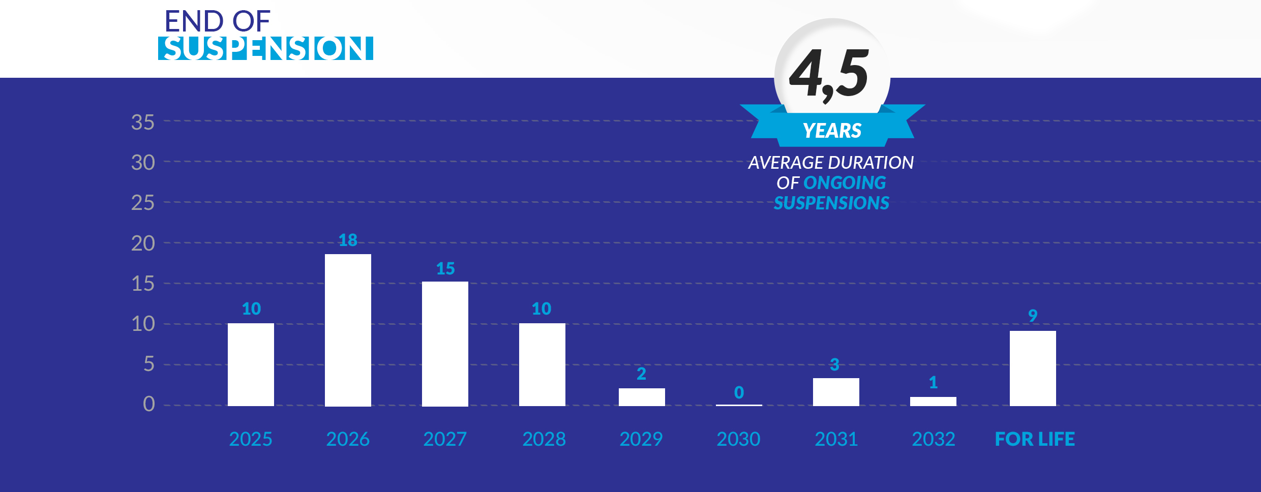 – The number of athletes whose suspension end dates fall between 2026 and 2028 has increased significantly since our first publication, but due to our methodology, which only counts ongoing sanctions, except the provisional suspensions. Some riders were notified between 2022 and 2024 but have only recently been suspended, sometimes because of lengthy legal proceedings (analysis of B samples, appeals, second-opinions, etc.).